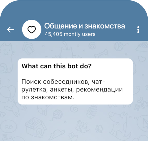 Наш сервис помогает людям находить новых друзей, общаться на интересные темы и создавать значимые связи в безопасной и комфортной обстановке.